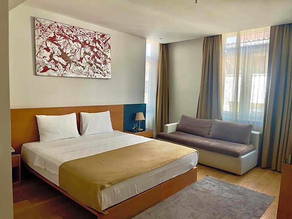 This spacious suite features wooden floors. It also features a marble bathroom with a king-size bath tub and free toiletries. It also has free coffee&tea setup and 0.75 lt water upon check-in.